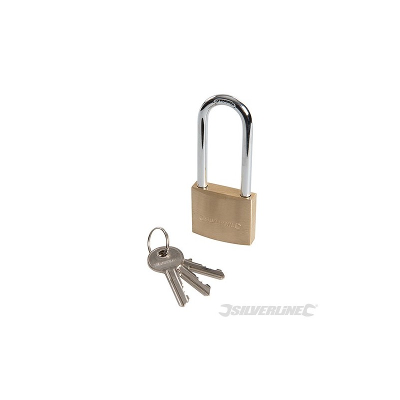 Pevné mosazné pouzdro a vícezápadkový zamykací mechanismus. Pochromováno, oko z kalené oceli. Včetně 3 mosazných klíčů.