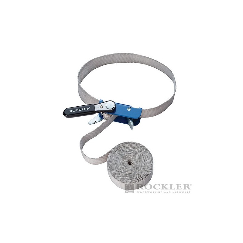 Reinforced webbing with herringbone weave for strength and durability. Nylon material does not stretch under tension. Ratcheting handle is permanently attached to prevent loss. Strap is stitched to ratchet post and improved clamp mechanism further cuts chance of slippage. For use when inward pressure must be exerted to prevent joining surfaces from sliding against each other. Band dimensions W x L: 25mm x 4.58m (1" x 15').