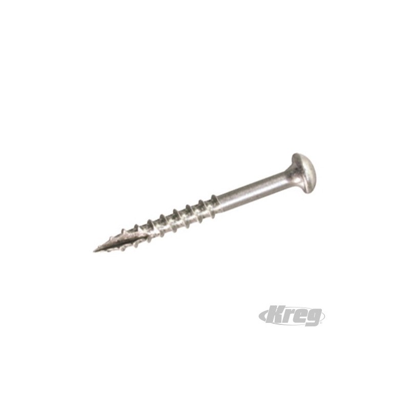 Wysokiej jakosci wkrety do otworów kieszeniowych, majace zastosowanie w miekkim drewnie, sklejce oraz w przypadku szerokiej gamy projektów zewnetrznych. Zaprojektowane by byly plasko osadzone w otworze, eliminujac potrzebe ciagniecia. Do uzycia z Kreg Jig.